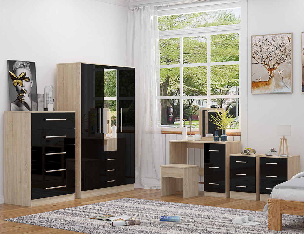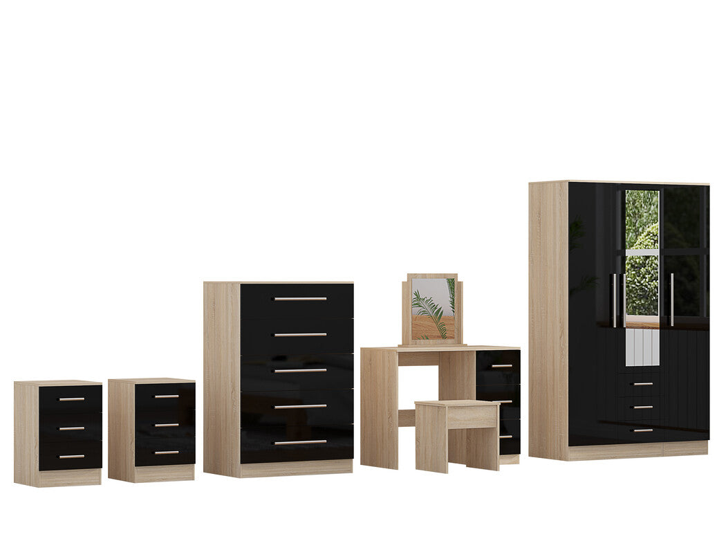 Unique Furnishings Combi Bedroom Set – Combi Wardrobe + Chest Of Drawers + Bedside Table + Dressing Table