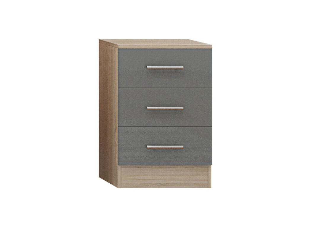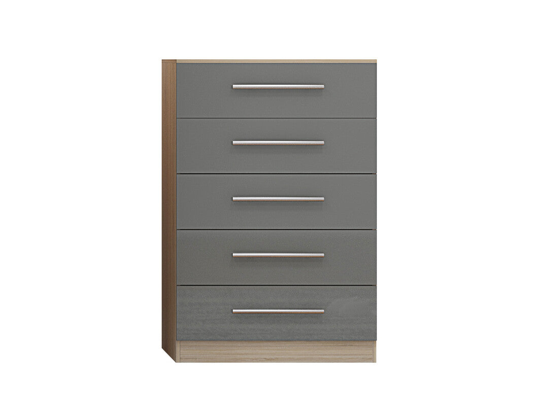 High Gloss Topbox 6 Door Dark Grey Mirrored Fitment Wardrobe + Double Dresser + Chest + 2 Bedsides