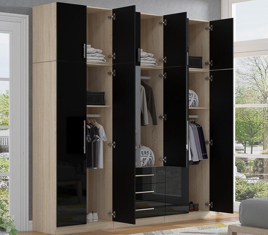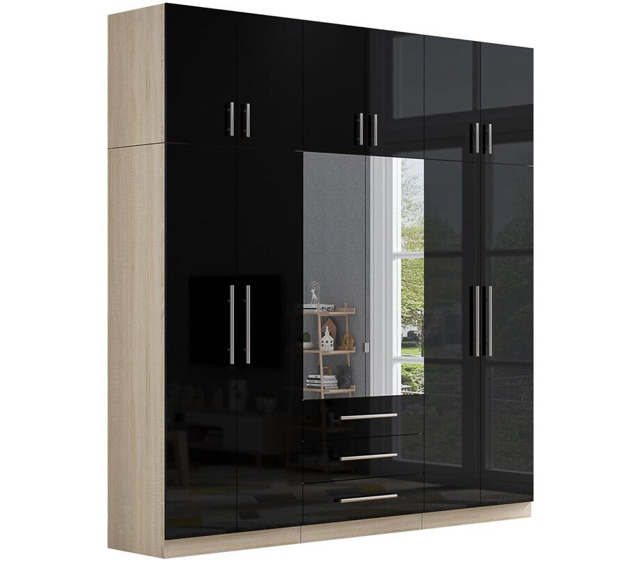 High Gloss Topbox 6 Door Mirrored Fitment Wardrobe Black
