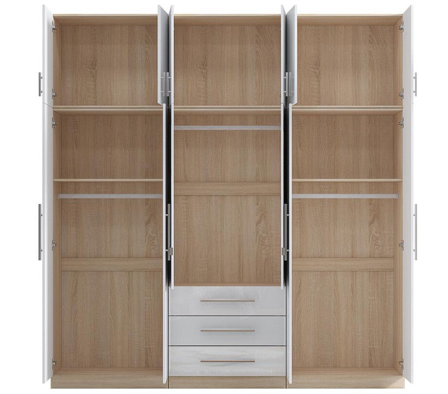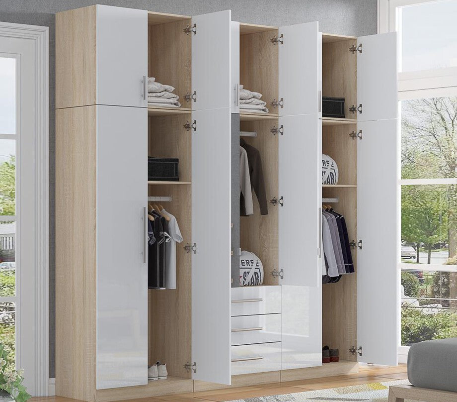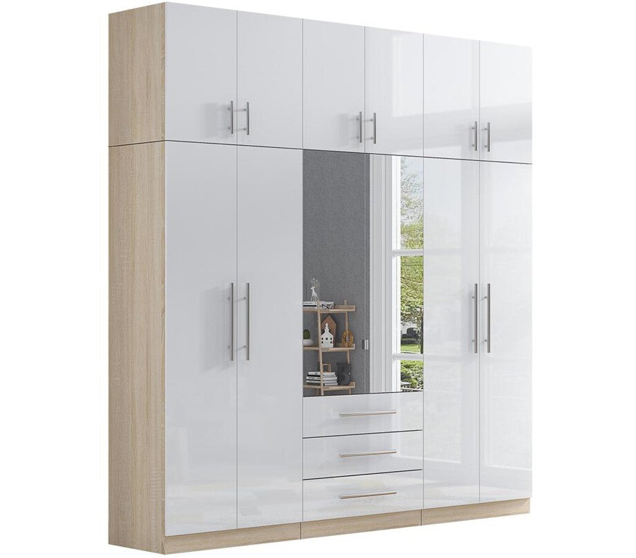 High Gloss Topbox 6 Door Mirrored Fitment Wardrobe White