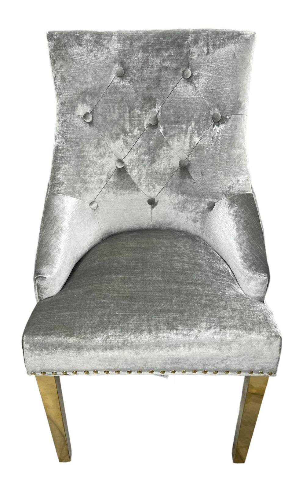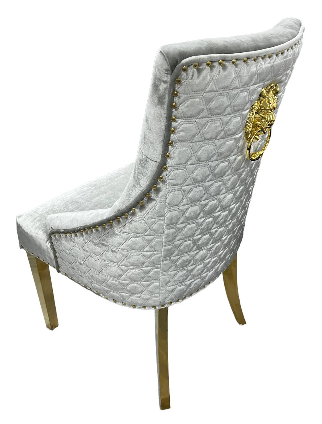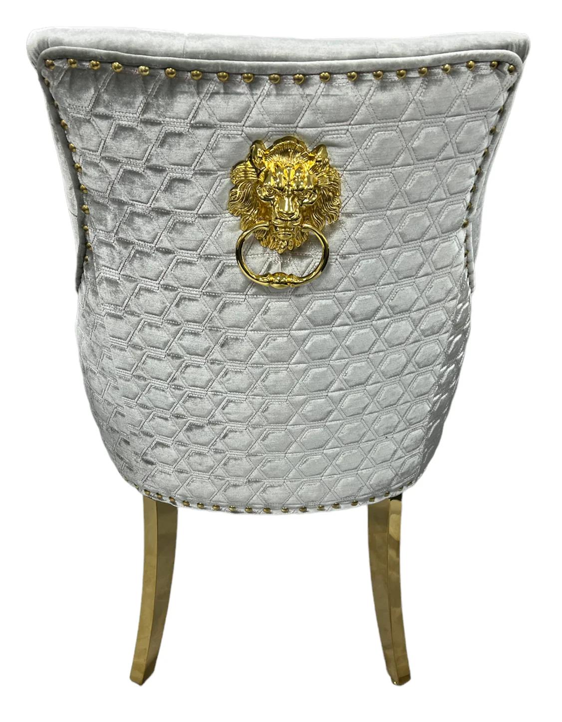 G-Roma Silver Grey Chair (Lion Knocker/Gold Legs)
