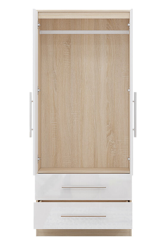 White 2 Doors + 2 Draws High Glass Wardrobe